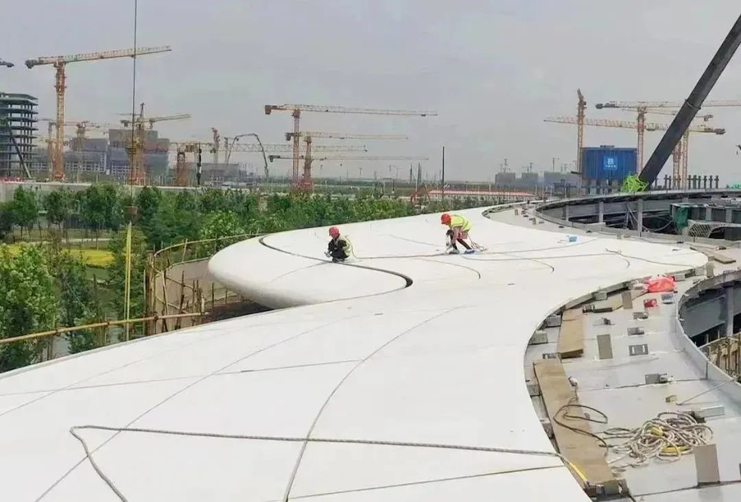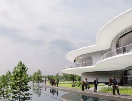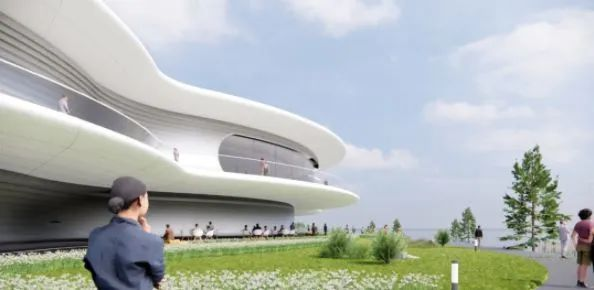 設(shè)計(jì)師選用UHPC超高性能混凝土幕墻材料來(lái)呈現(xiàn)云朵形狀的裝飾立面,通體白色的外立面、弧形的S型曲線、云隨浪動(dòng),形成了一副絕美的畫卷。
