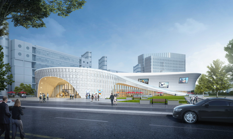 紫竹數(shù)碼廣場建筑沿東川路呈半圓弧形展開,充分利用地形高差,使建筑群與廣場空間實(shí)現(xiàn)互動,打造有活力的城市空間。